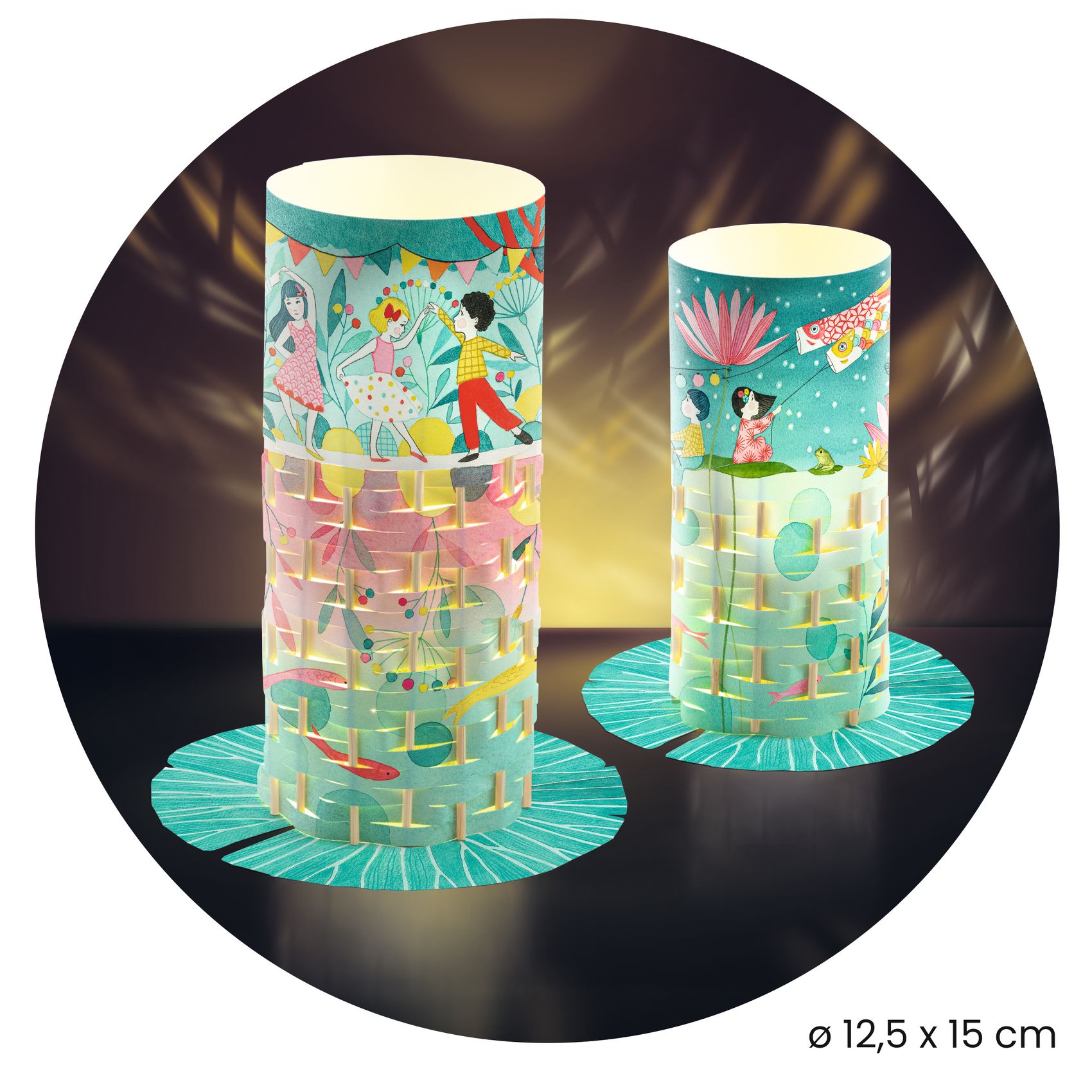 Maak je eigen lichtje voor in je (slaap)kamer en geniet van het zachte licht. Een creatieve set met twee papieren lantaarns om te weven van natuurlijke bamboestokken. Volg de instructies op de achterkant van de lantaarns om te leren hoe je het papier weeft. Eenmaal gevlochten, kunnen kinderen de delicate lantaarns op de meegeleverde waterlelie-trays plaatsen om dag en nacht een warme sfeer te creëren.